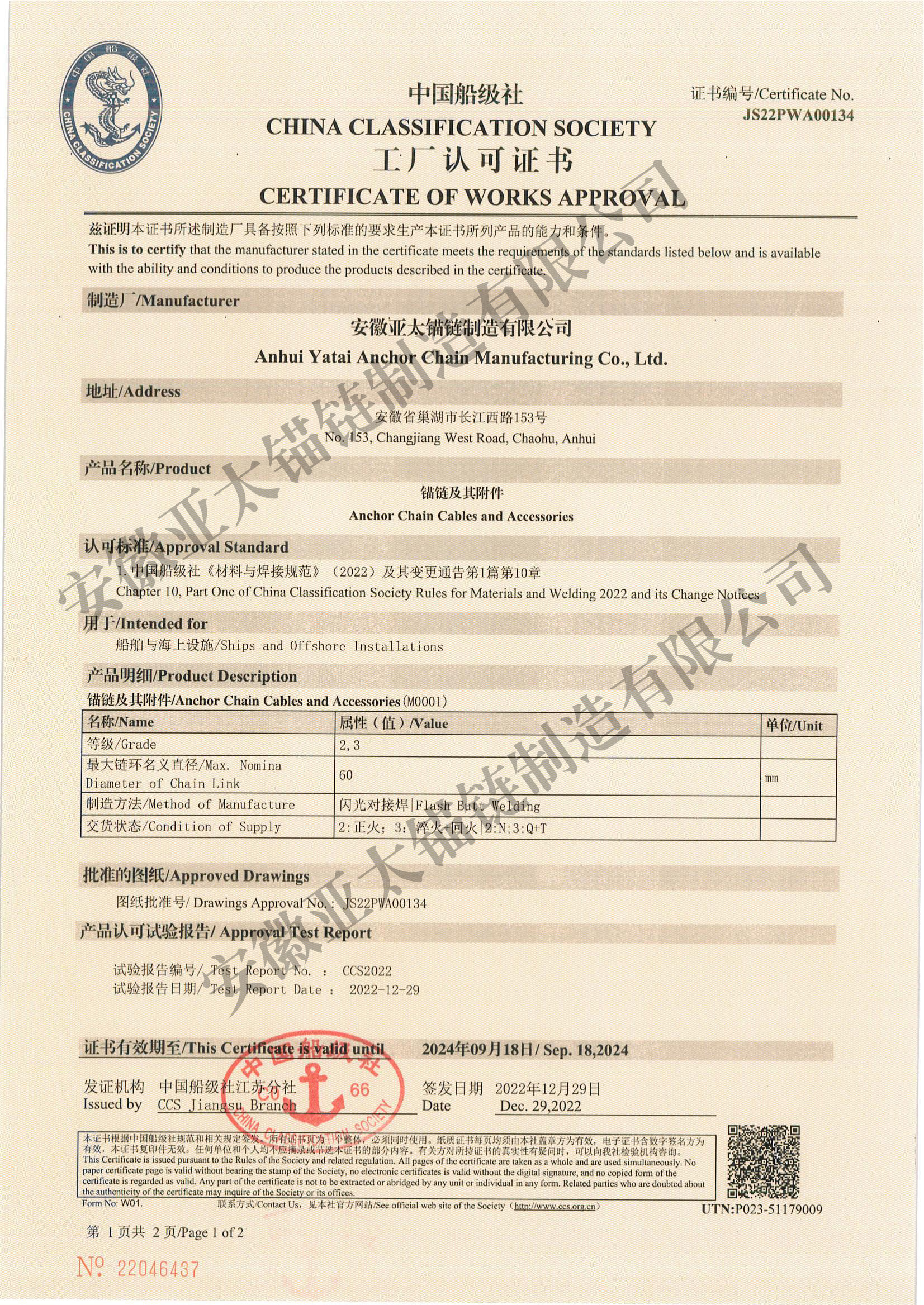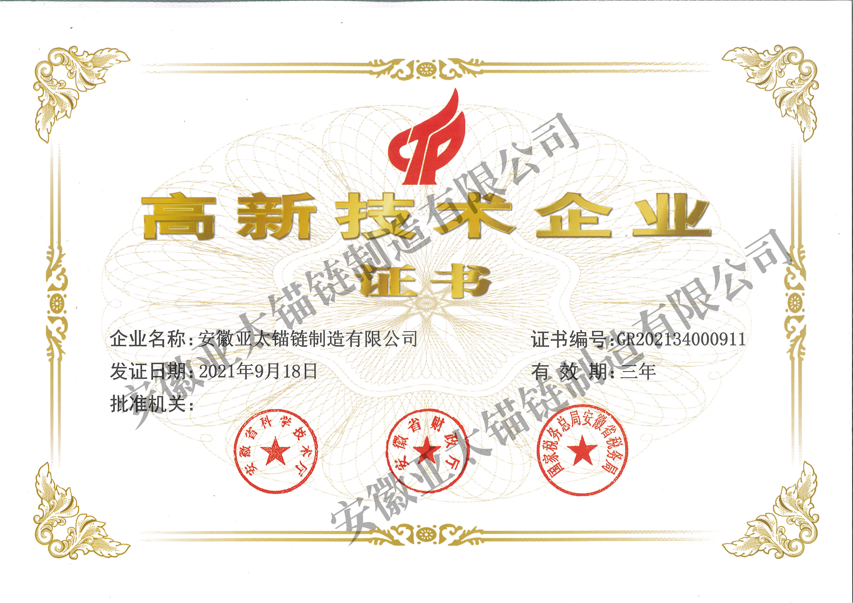 安徽亞太錨鏈制造有限公司是國家高新技術(shù)企業(yè),也是國家GB/T 549-2017《電焊錨鏈》標(biāo)準(zhǔn)的起草和制定單位之一。公司旗下設(shè)有錨鏈分廠、浮標(biāo)分廠、舾裝件分廠等多個(gè)分廠。公司專業(yè)從事φ12.5mm-φ107mm二、三級(jí)船用錨鏈、浮標(biāo)錨鏈、錨鏈附件,錨、船舶曬裝產(chǎn)品、航標(biāo)、系船浮、船型標(biāo)、多種規(guī)格海洋監(jiān)測浮標(biāo)及航標(biāo)燈等產(chǎn)品的生產(chǎn)、安裝和服務(wù)。目前公司的產(chǎn)品銷往全國各地船廠、碼頭、航標(biāo)處、航道局、海洋局,并已走上國際市場,如東南亞、中東、歐美等國家。